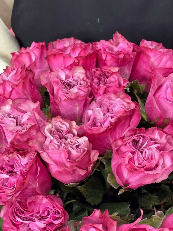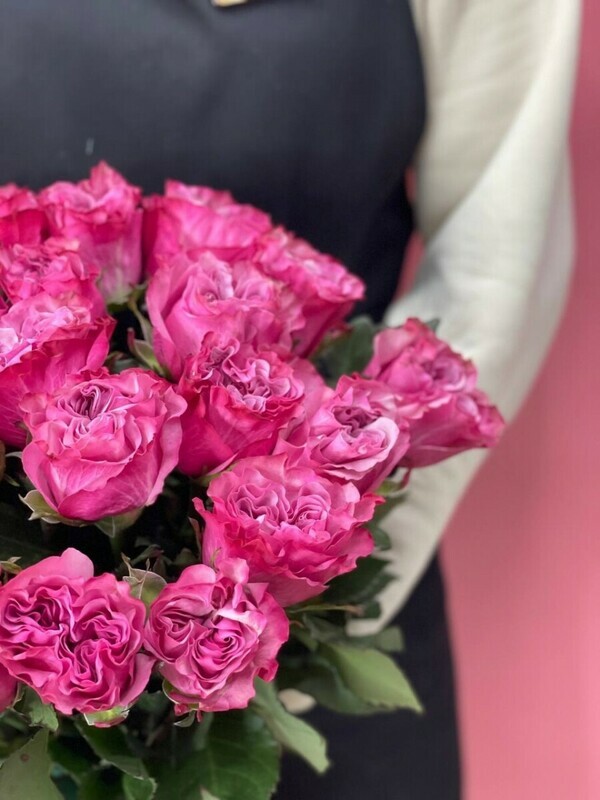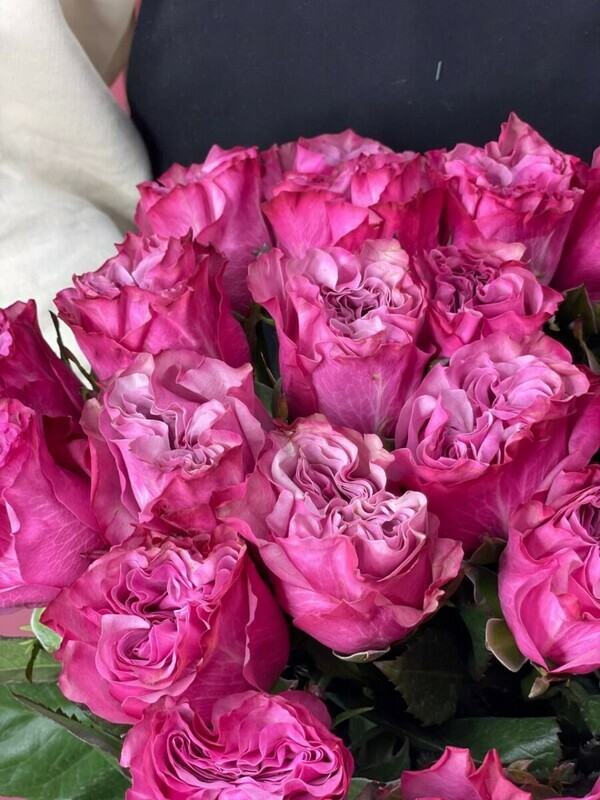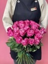 - 25 пионовидных роз роз с оформлением на атласную ленту
