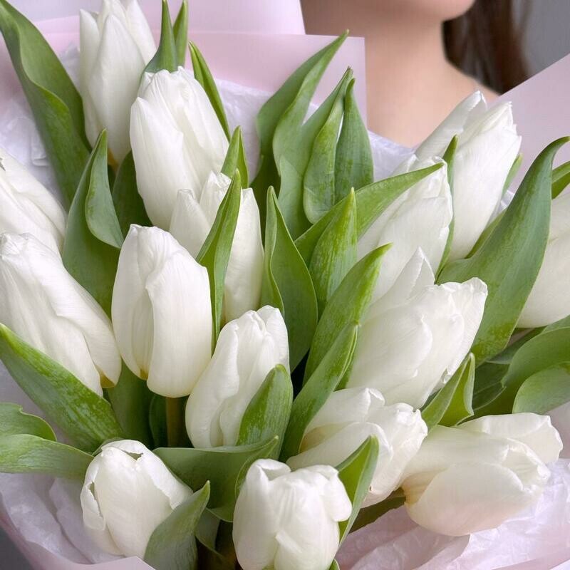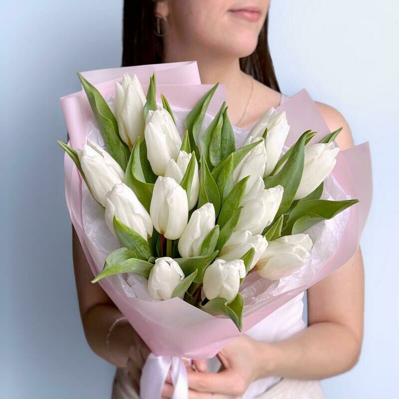 Состав: белый тюльпан - 15 шт. Размер: ширина - 30 см, высота - 50 см.