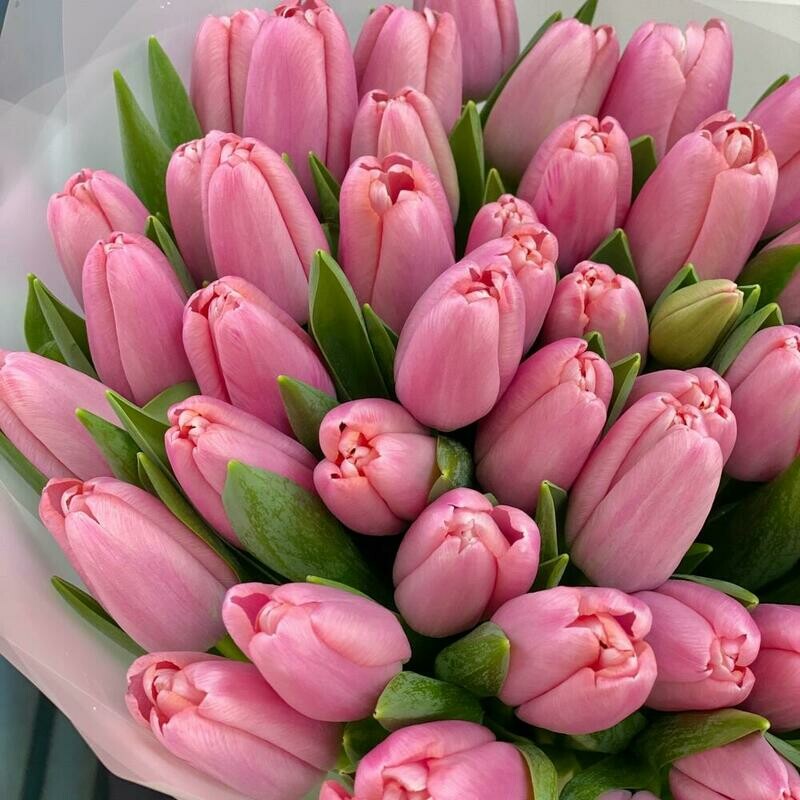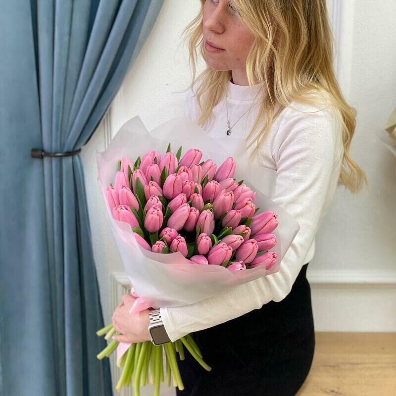 Состав: тюльпан розовый - 49 шт., упаковка дизайнерская - 4 шт. Размер: ширина - 33 см, высота - 43 см.