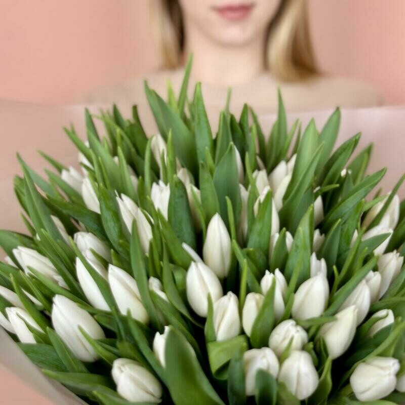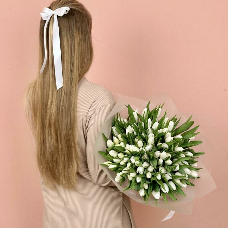 Состав: тюльпан - 101 шт. Размер: ширина - 45 см, высота - 40 см.