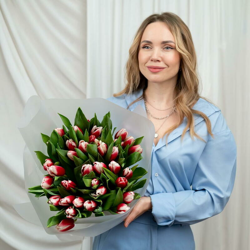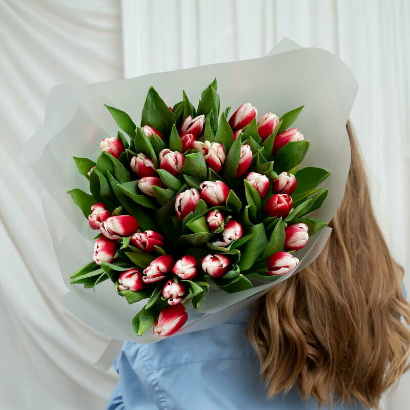 Состав: упаковка - 1 шт., тюльпаны - 35 шт. Размер: ширина - 30 см, высота - 50 см.