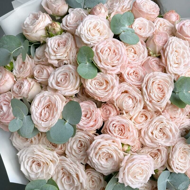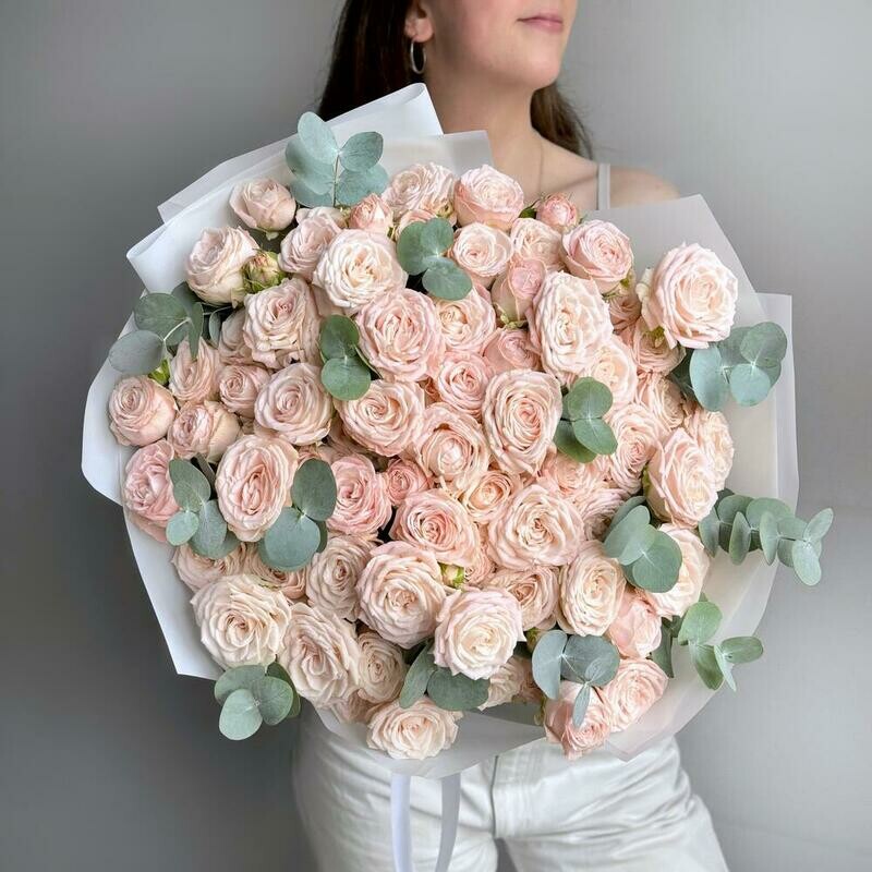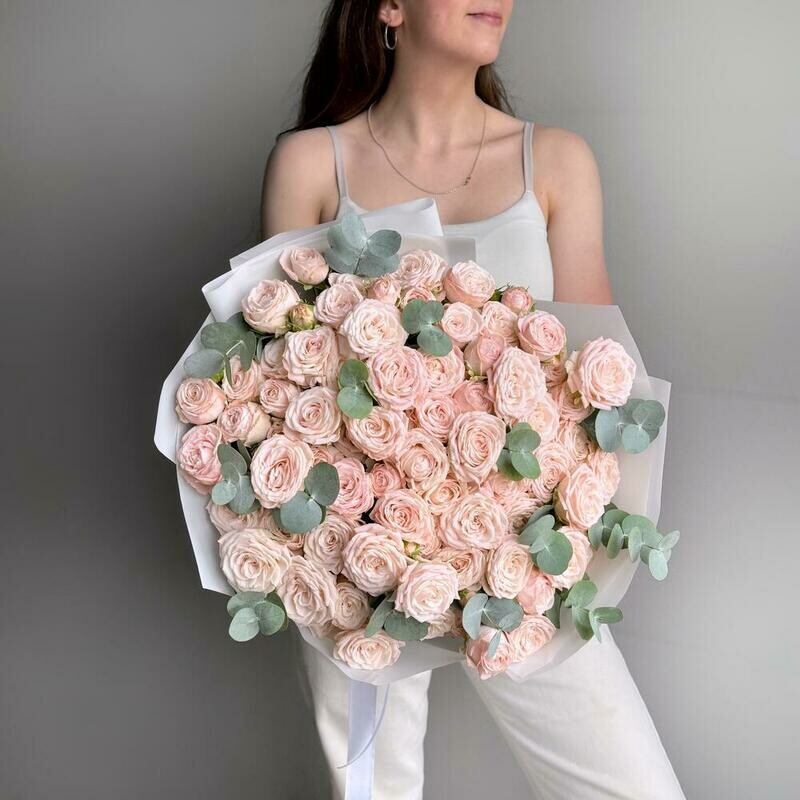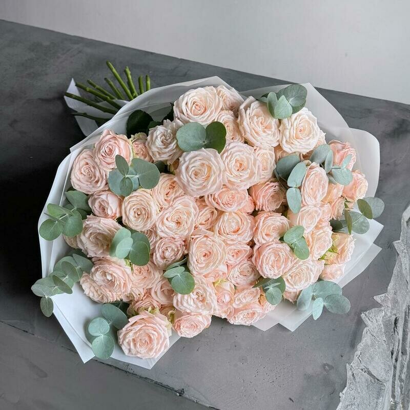Состав: кустовая роза bombastic - 15 шт, эвкалипт cineria - 6 шт. Размер: ширина - 46 см, высота - 52 см.