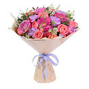 Эта композиция с первого взгляда очаровывает своей воздушностью и пленяет сладко-розовой цветовой гаммой. Нежно-голубые гвоздики, белоснежные астрации, изящные кустовые розы, роскошные французские розы, очаровательные малиновые герберы-мини, нежная зелень грин белла и малахитовый писташ - волшебное сочетание прекраснейших цветов. Подарите любимой сказку.