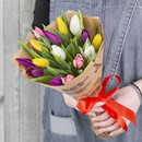 Букет из разноцветных тюльпанов - это позитивное настроение, которое так просто подарить.