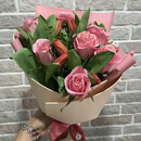 Букет из тюльпанов и роз подарит хорошее настроение .