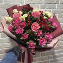 Сочный букет из кустовых и одноголовых роз. Шикарный подарок к любому празднику