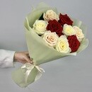 - Букет из 9 разноцветных россииских роз 50 см