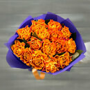 Букет из 13 оранжевых роз в упаковке Кения 40 см.
