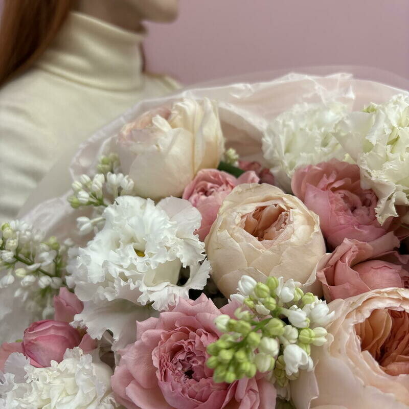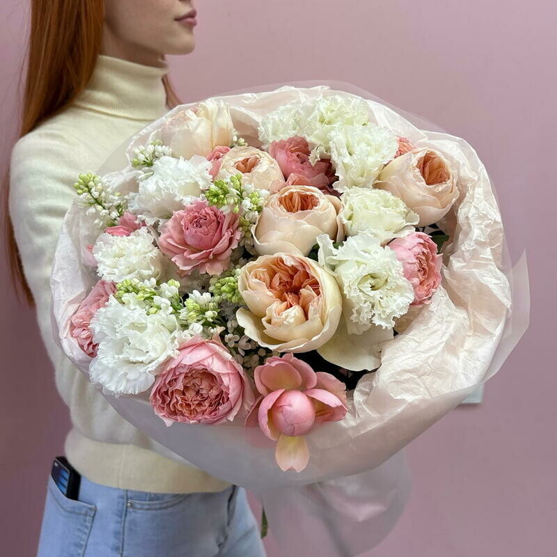 «Поцелуй Джульетты» букет на основе роз Дэвида Остина, стандартный