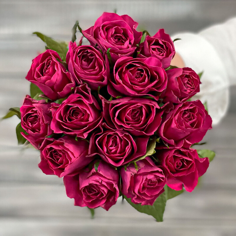 Букет из 21 малиновой розы с лентой Кения 40 см., стандартный