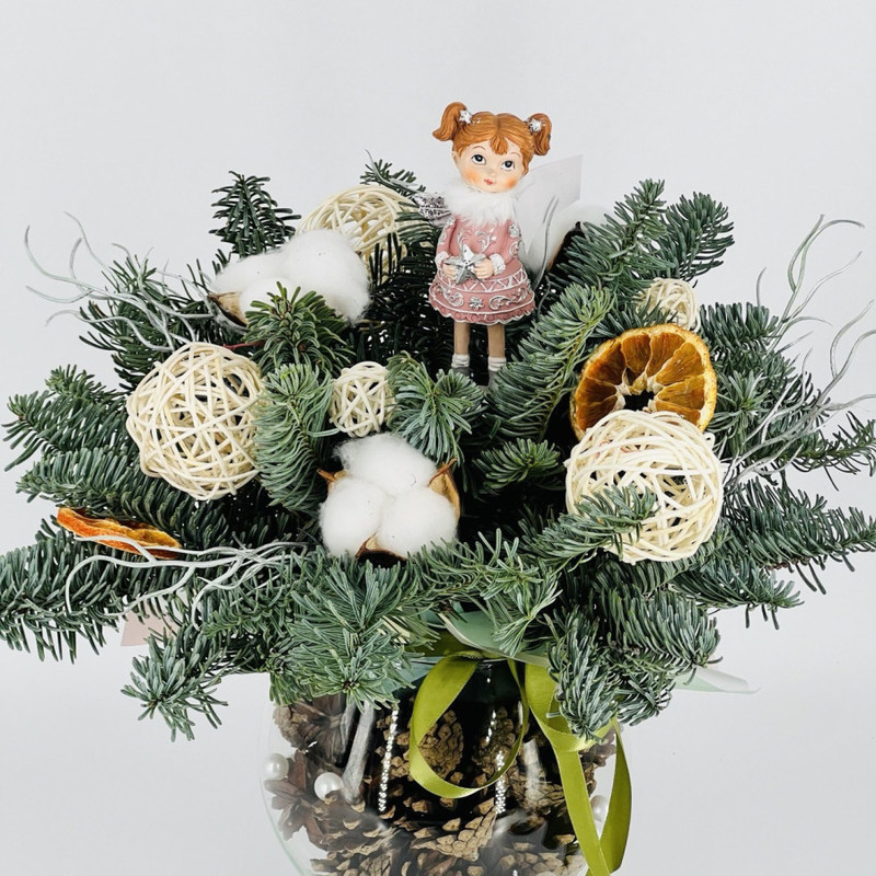 В новогодние и предновогодние праздники всем придутся по душе неординарные букеты с участием натурального нобилиса. Одним из основных преимуществ ароматной пихты является то, что её ветки даже после срезки долго сохраняют свой волшебный аромат и натуральный цвет. Веточки нобилиса, с декоративными элементами в стеклянном бокале, это стильное и эффектное оформление композиции, которая украсит любой интерьер, рабочий стол, ресепшн. Такой подарок создаст неповторимую атмосферу праздника, послужит украшением любого торжества и приятным романтическим сюрпризом. Хвойный букет можно подарить на любой праздник, будь то юбилей, день рождения, выписка из роддома, именины, крестины, повышение по службе, Новый год, Рождество или просто как комплимент. Подарив такой необычный букет, вы подарите незабываемые эмоции. Размер бокала 2 литра.