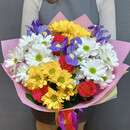 Хризантема кустовая - 4шт. ирисы - 3шт. роза эквадор - 4шт.