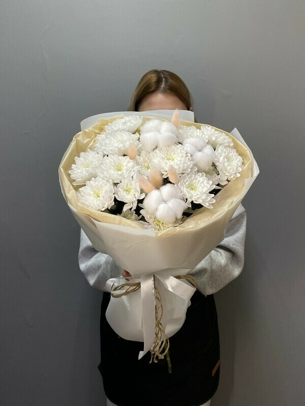 - Белый букет с хризантемой