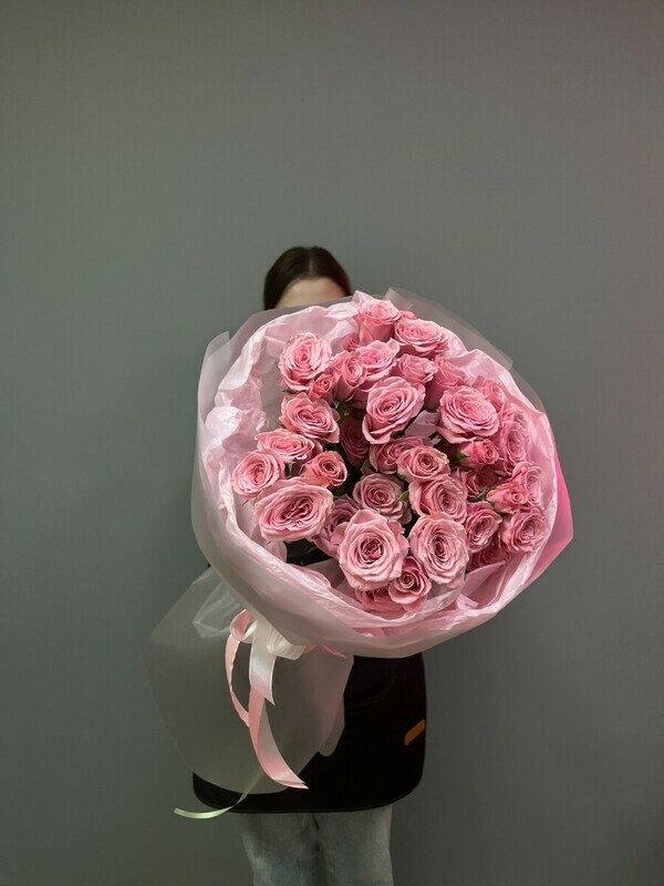 Розовый букет с кустовыми розами, стандарт
