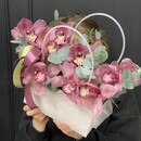 - Композиция из орхидей с эвкалиптом в сумочке