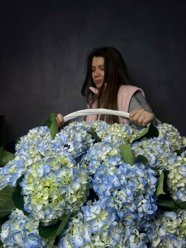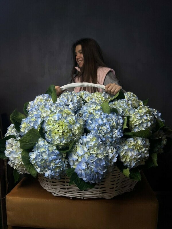 Корзина голубой гортензии