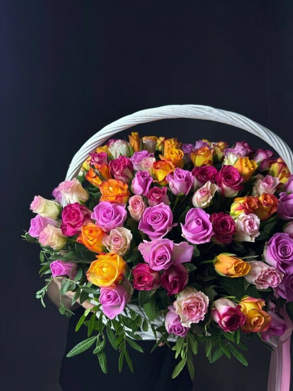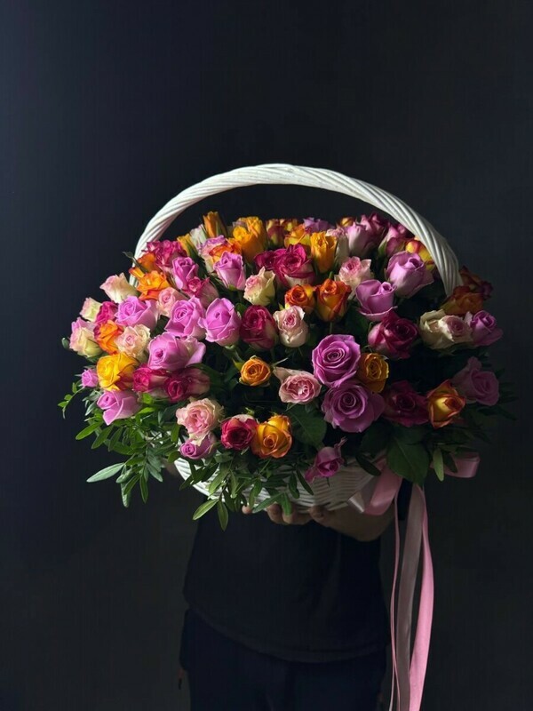 101 роза микс в корзине