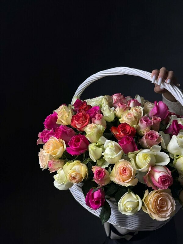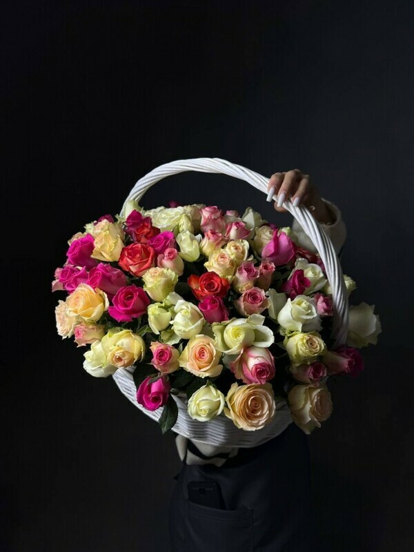 - 151 роза микс в корзине
