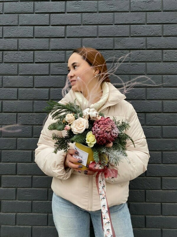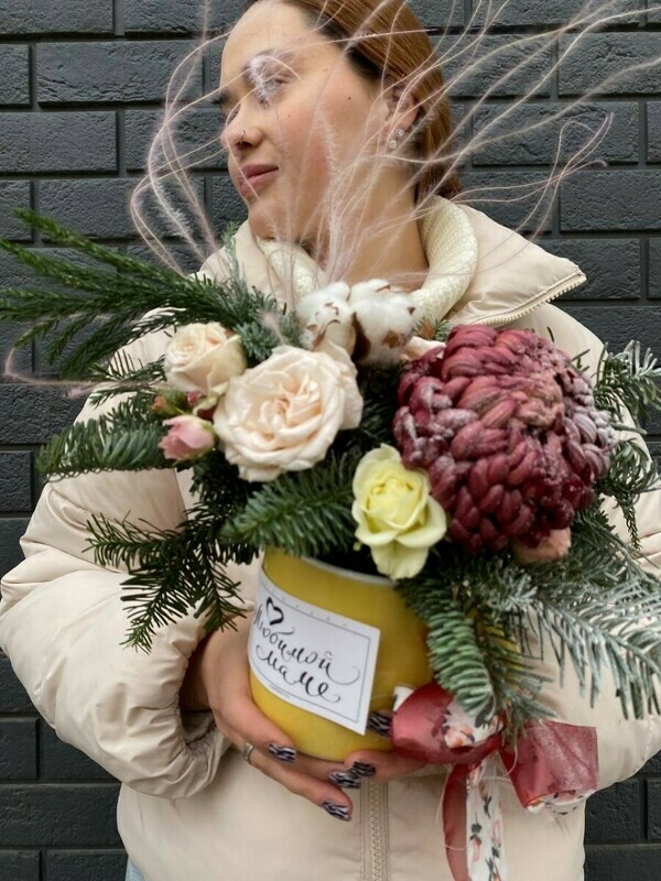 - Новогодняя композиция с хризантемой