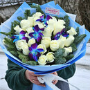 букет в зимней тематике с дендробиумом