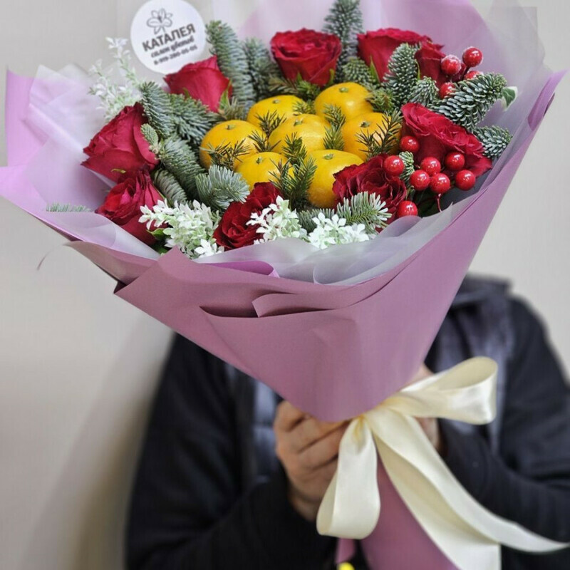 новогодний букет с мандаринками