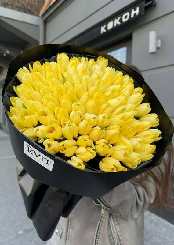 - 101 желтый тюльпан пышно красиво