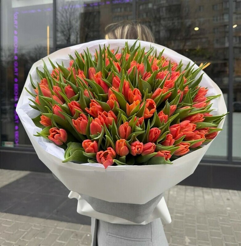 - Букет из 101 оранжевого тюльпана