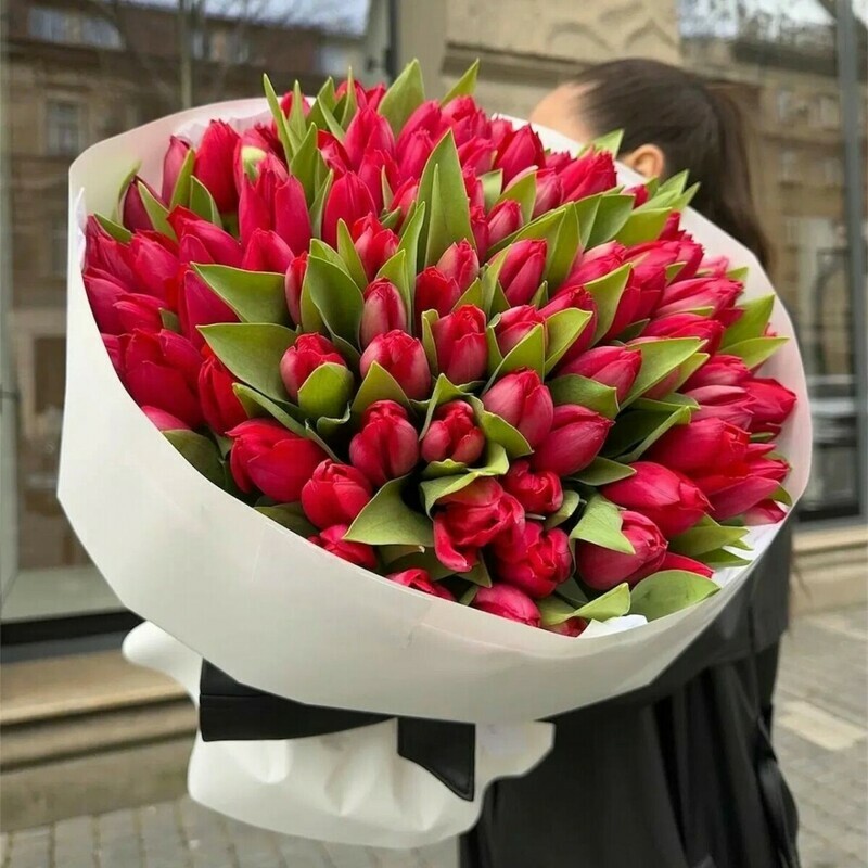 - 101 тюльпан в красном оттенке