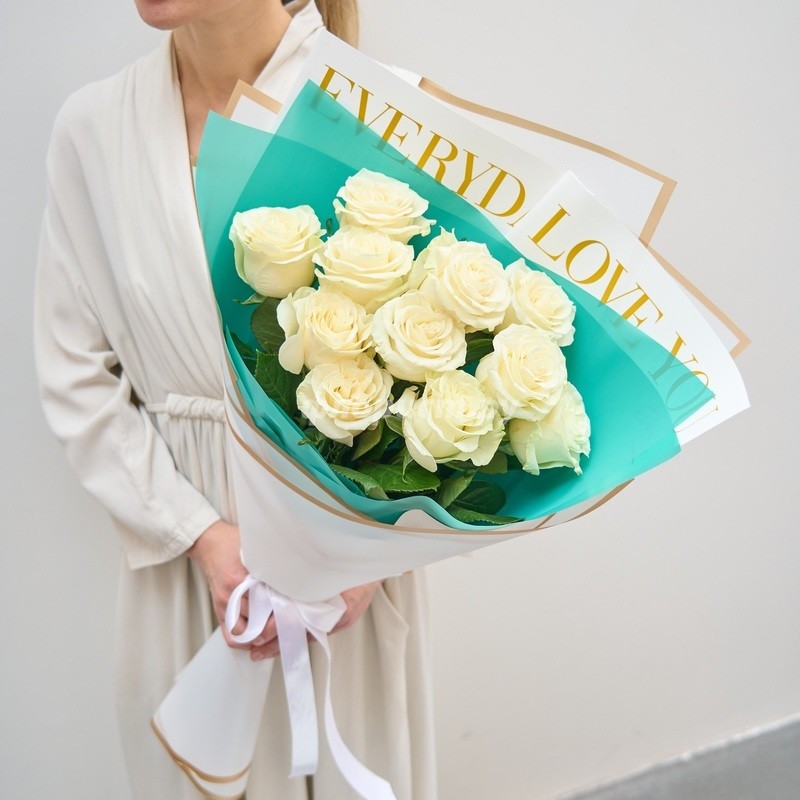 11 Эквадорских Белых Роз 70 см, 11 роз