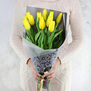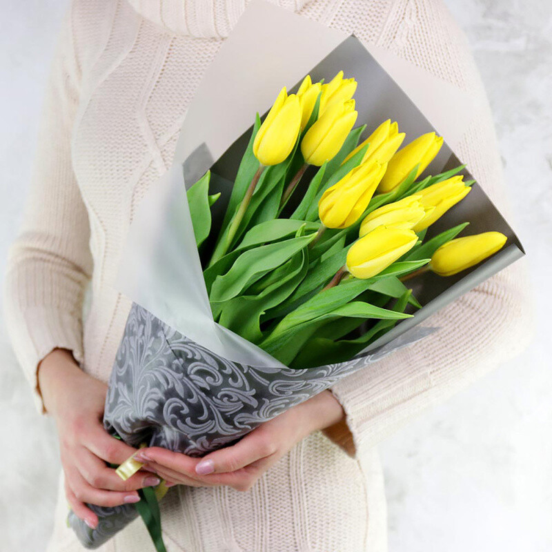 Букет из желтых сортовых тюльпанов в стильной упаковке, 11 тюльпанов