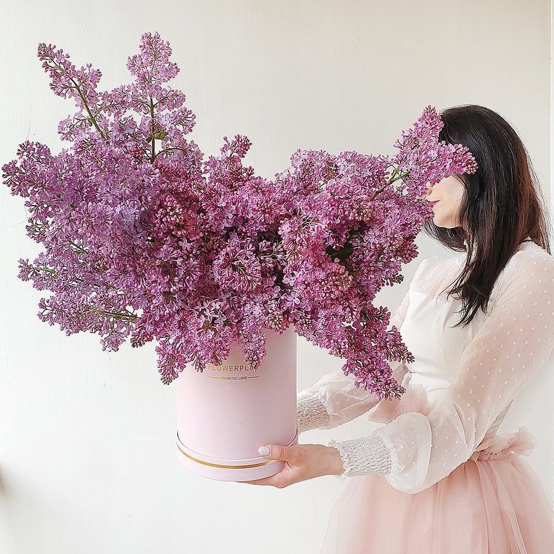 - Изумительная шляпная коробка с весенней сиренью