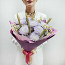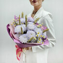 Букет с цветной хризантемой и пшеницей 2, стандартный