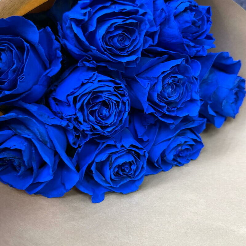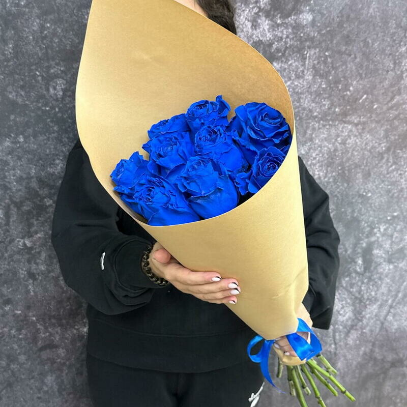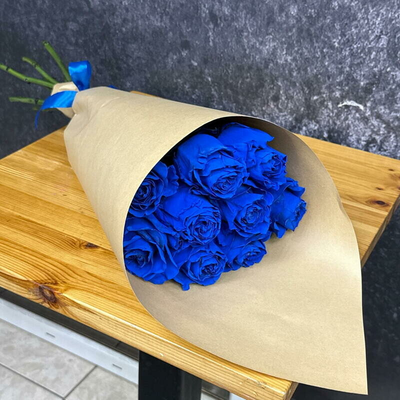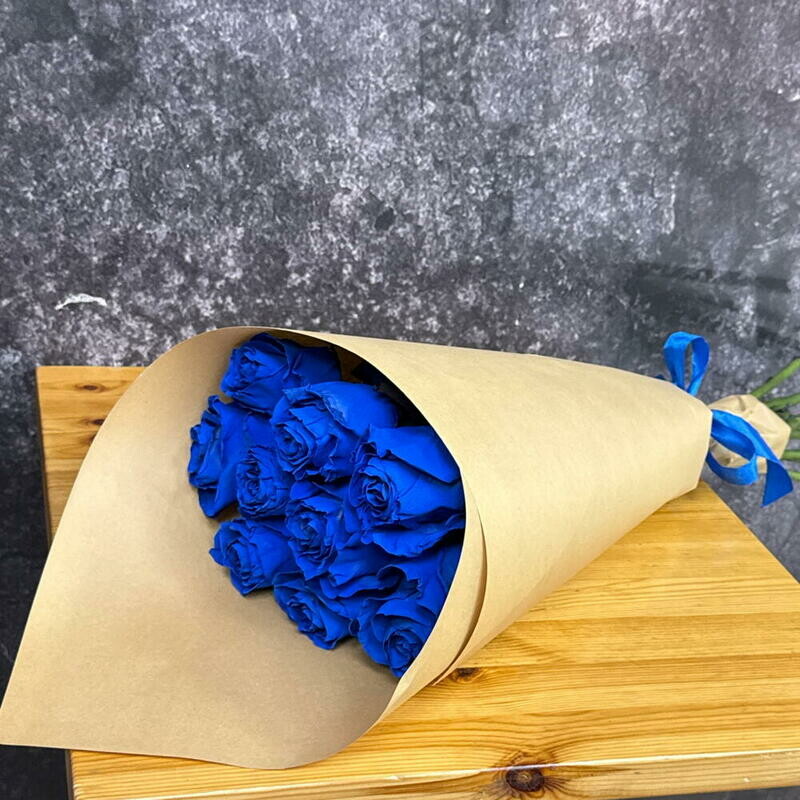 Этот букет из 9 синих роз символизирует мистику и загадочность. Яркий цвет цветов придает композиции уникальный шарм и делает его идеальным подарком для особых моментов.