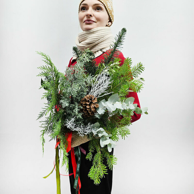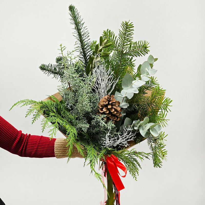 Зимний букет из хвои от флористического салона «Талисман Флора» — это воплощение уюта и свежести зимних дней. Хвоя — символизирует вечную жизнь и стойкость, она создает атмосферу свежести и уюта. Её насыщенный зелёный оттенок и текстура делают композицию ещё более привлекательной. Этот букет станет идеальным украшением для вашего дома в преддверии зимних праздников. Он добавит нотку спокойствия и гармонии в ваш день, напоминая о красоте и простоте природы.
