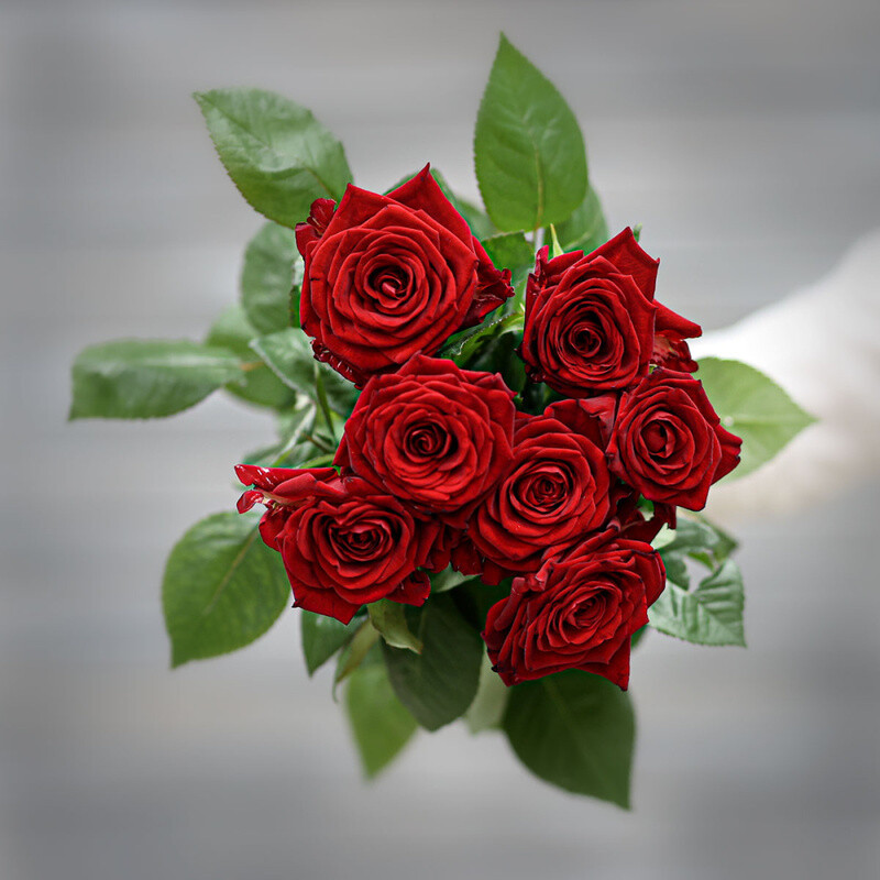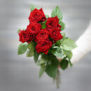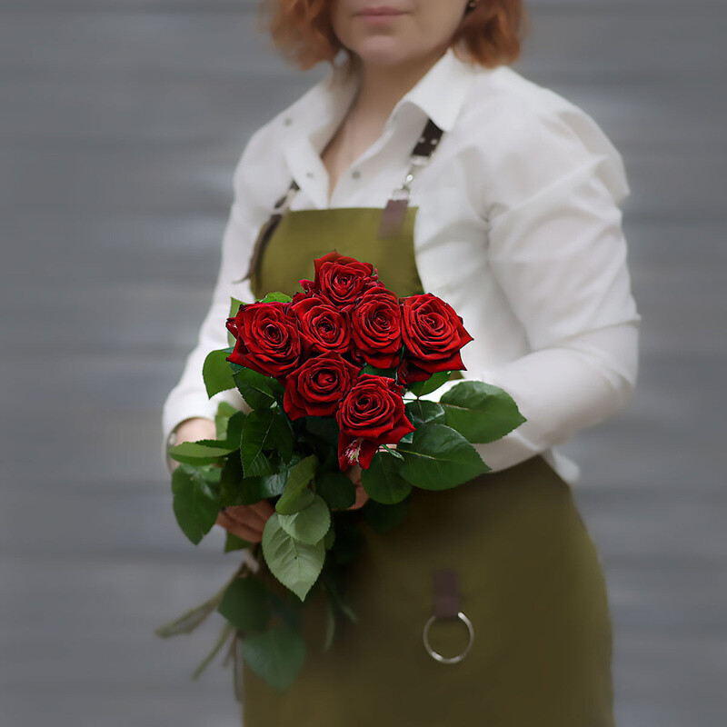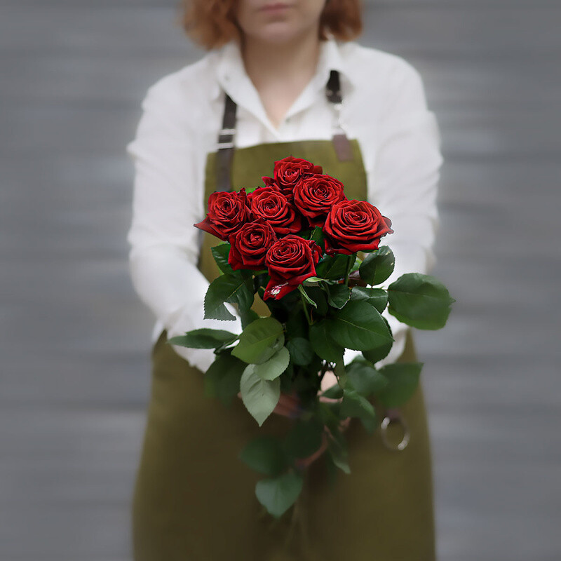 - Букет из 7 красных роз (Россия) с лентой 60 см