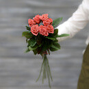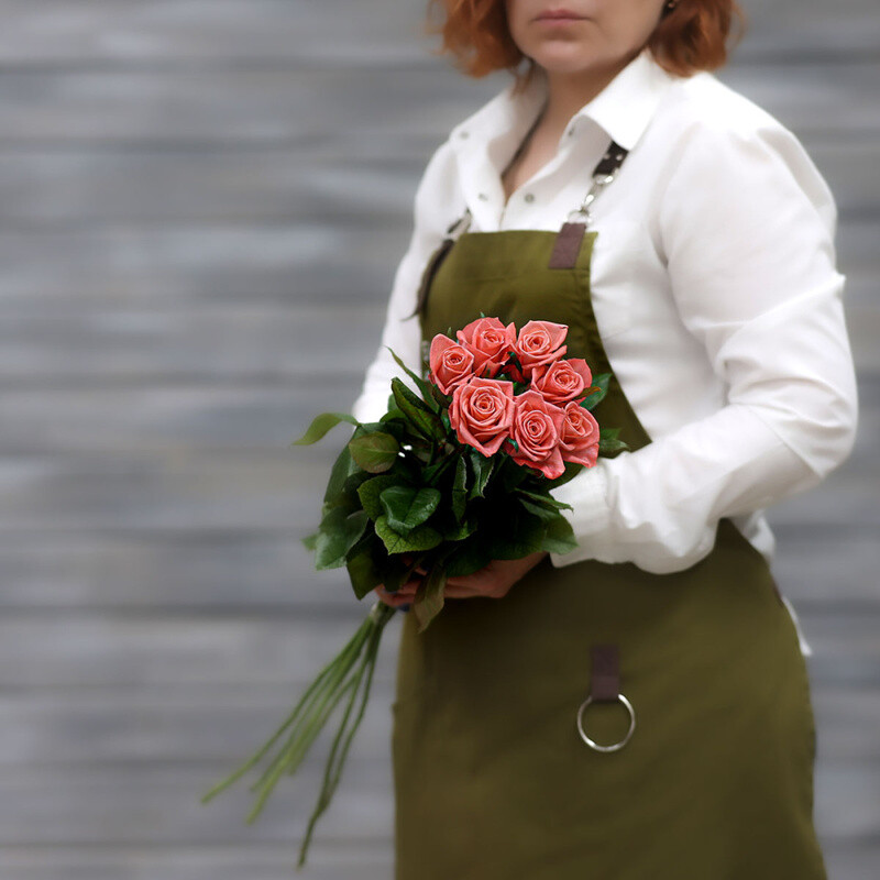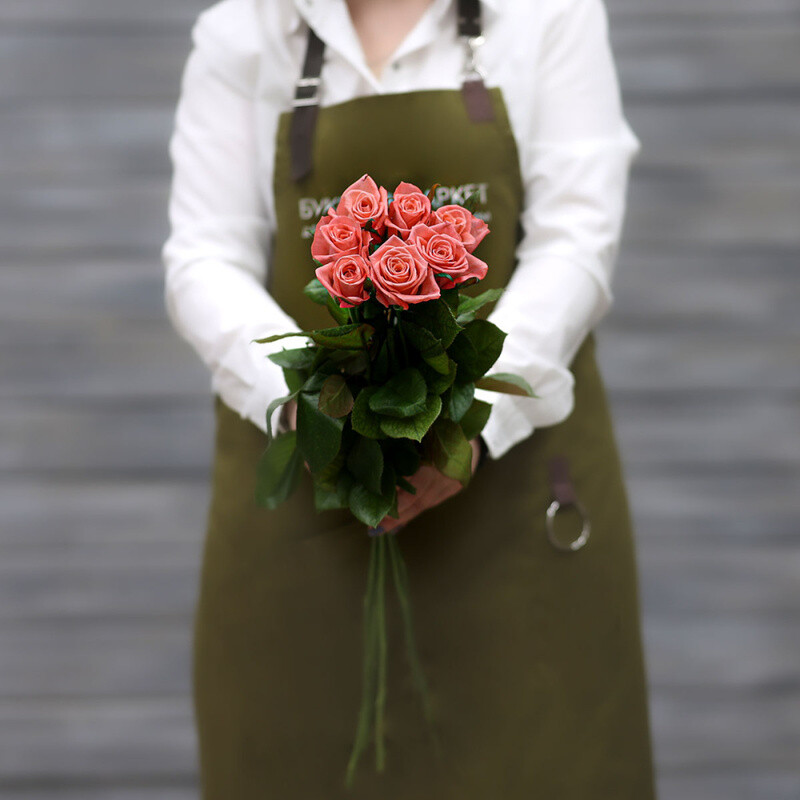 - Букет из 7 коралловых роз (Россия) с лентой 60 см