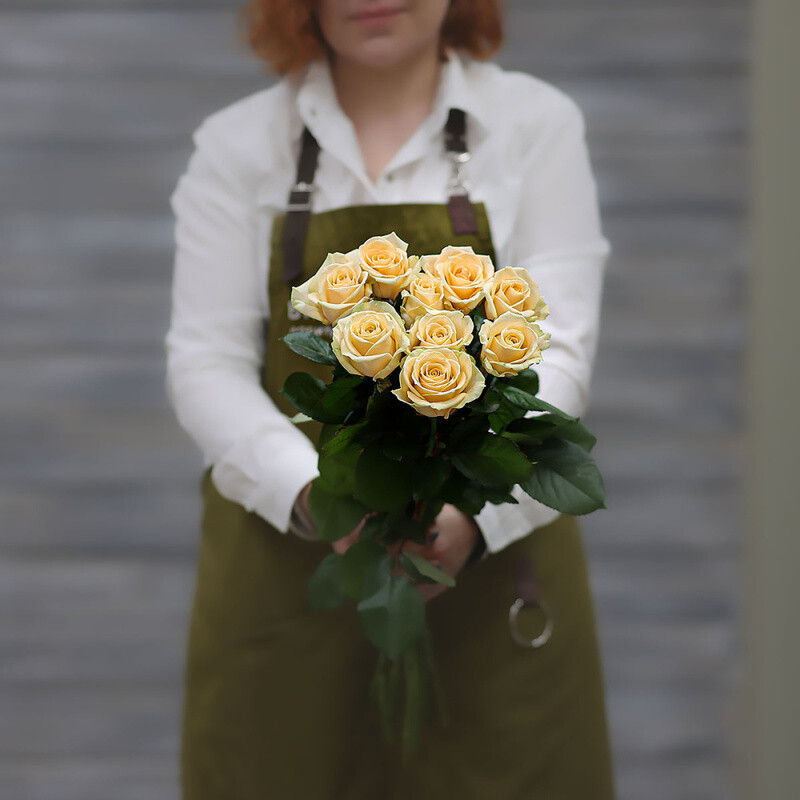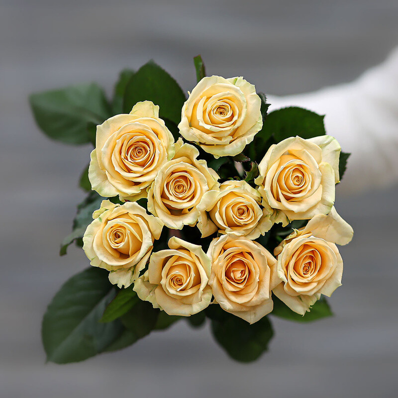 - Букет из 9 кремовых роз (Россия) с лентой 60 см