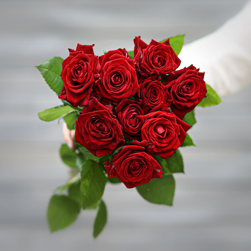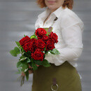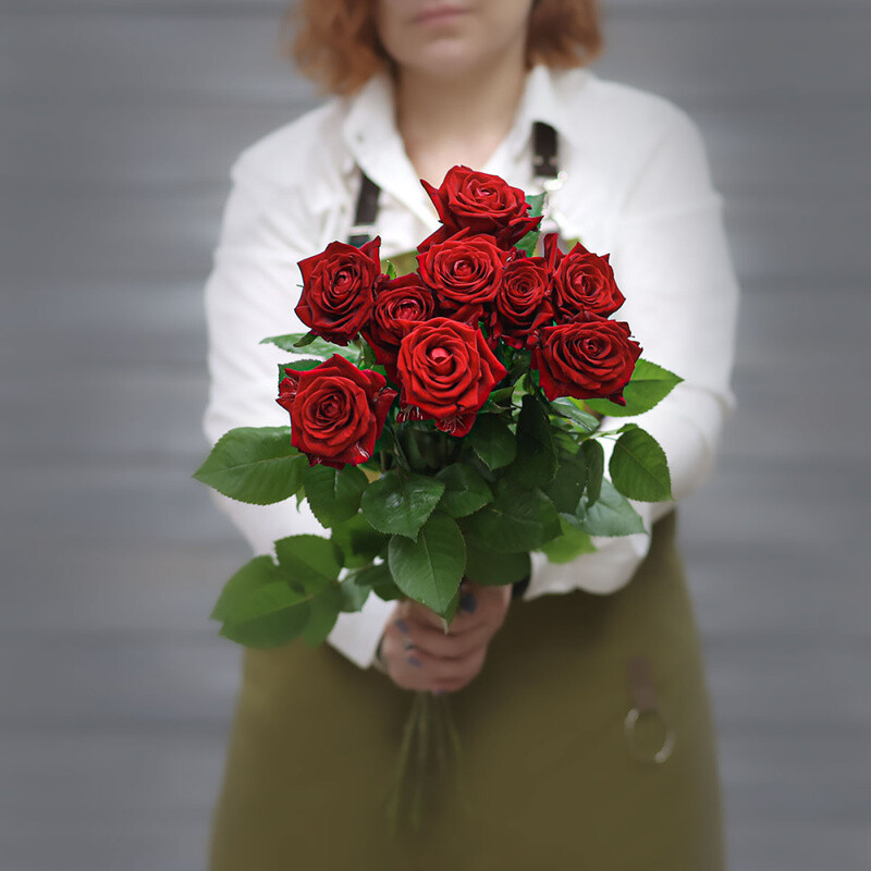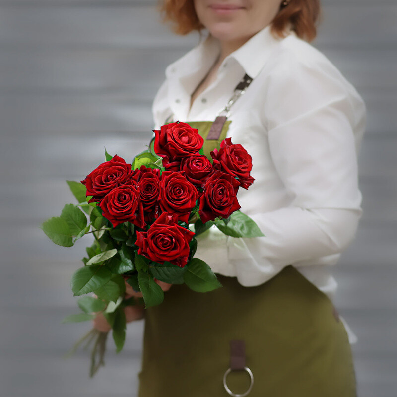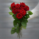 - Букет из 9 красных роз (Россия) с лентой 60 см