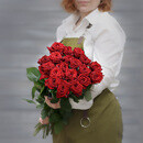 - Букет из 19 красных роз (Россия) с лентой 60 см
