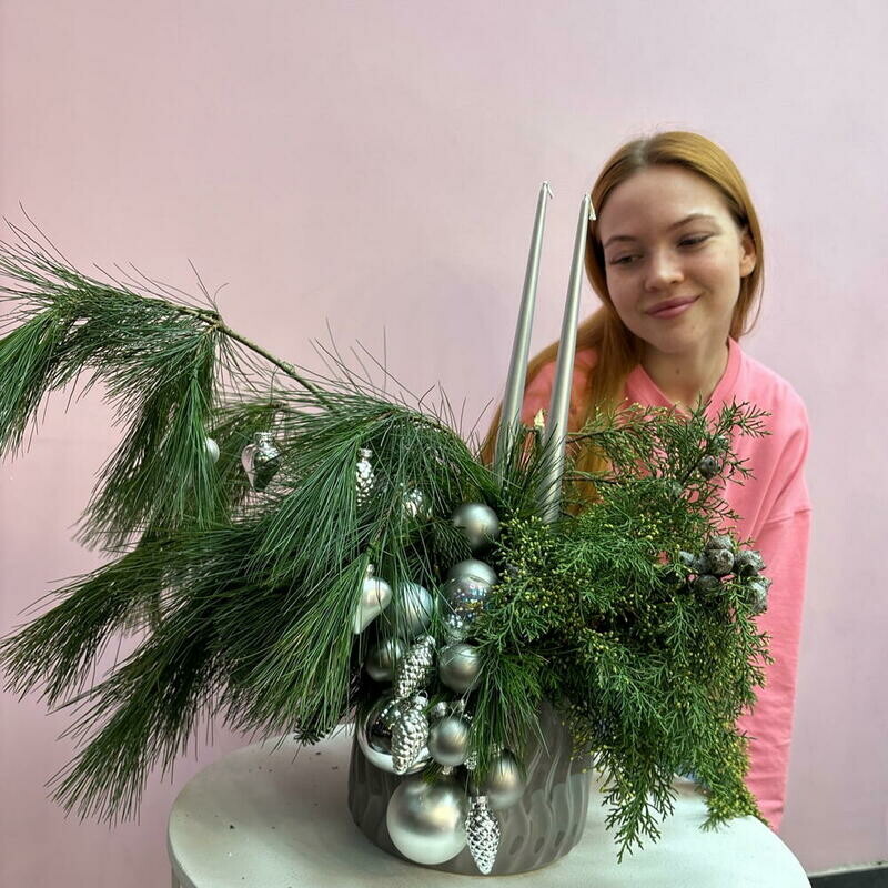 Композиция в керамической вазе «серый конь» с свечами, премиум