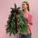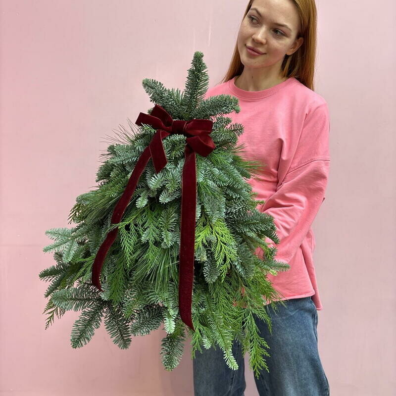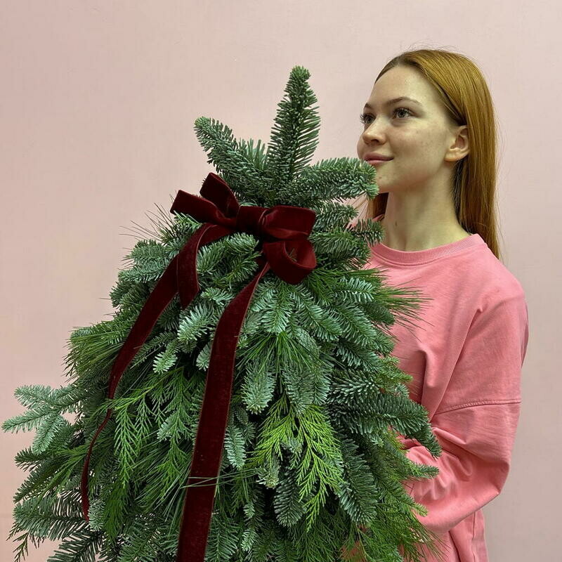 Лаконичная елка из микса хвои с бархатным бантом, премиум