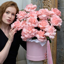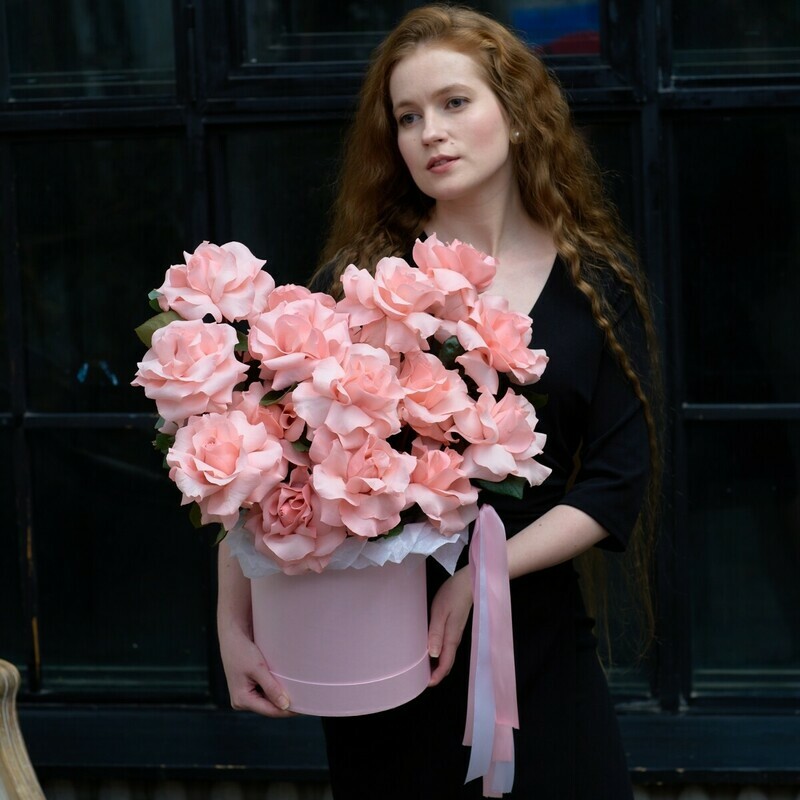 19 розовых эквадорских роз в шляпной коробке, стандартный