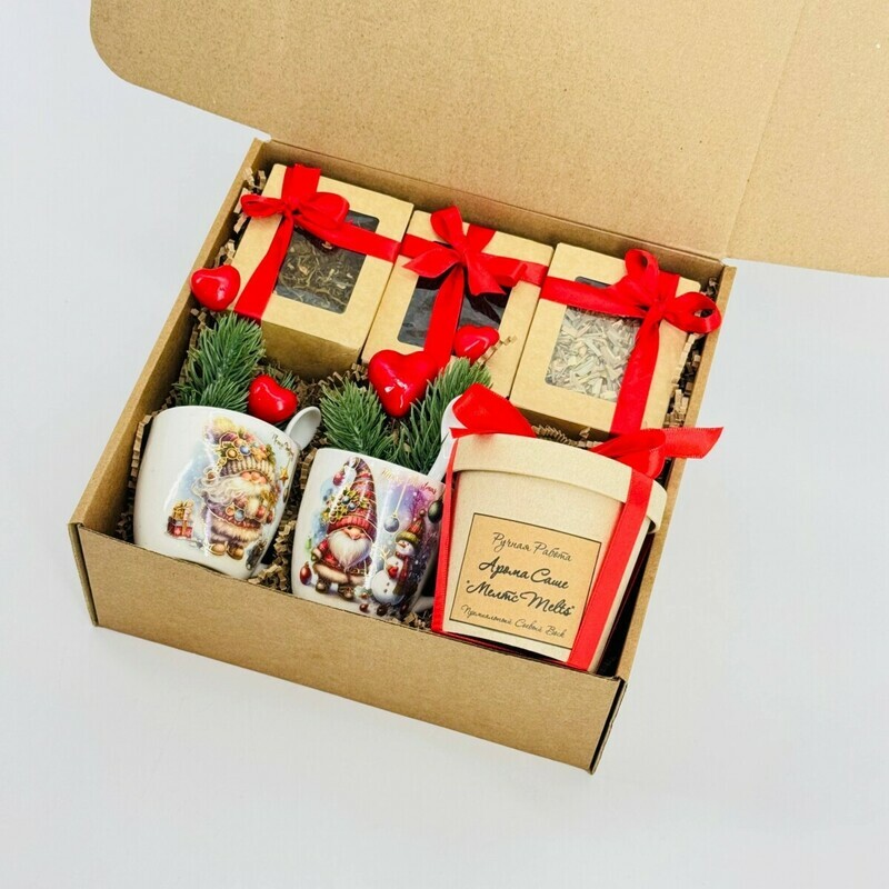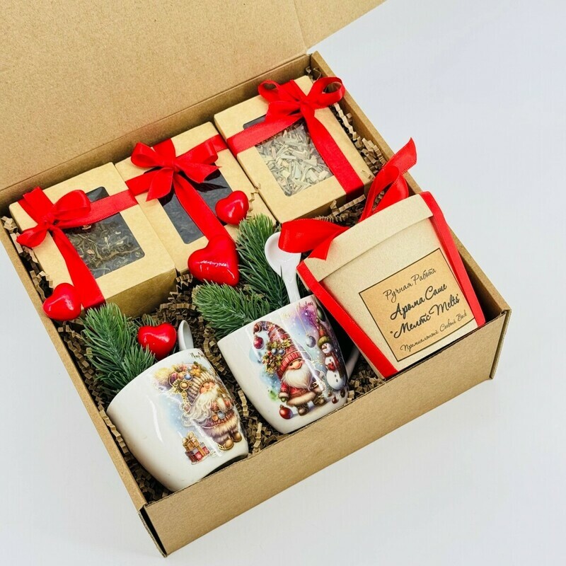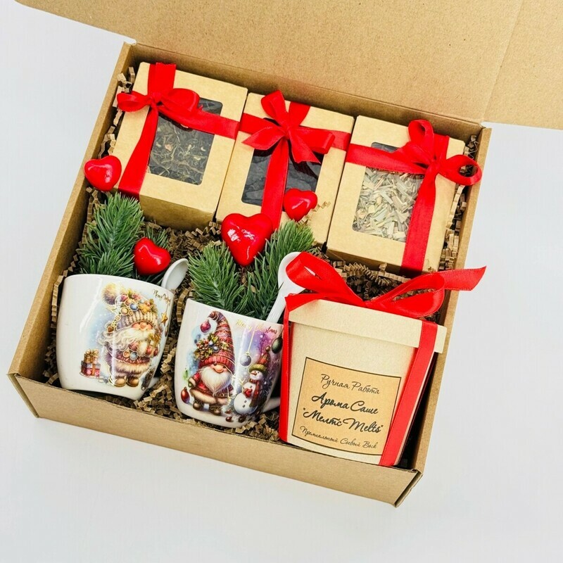 Подарочный набор на новогодний праздник – идеальный подарок для близких и коллег! Ищете красивый и универсальный подарок на Новый год, Рождество? Этот готовый подарочный набор — лучшее решение для ваших родных и друзей: мамы, папы, бабушки, дедушки, сестры, тёти, брата, а также для друга, подруги, руководителя или директора. В наборе чай элитный, новогодняя кружка и арома саше мелтс ручной работы. Почему стоит выбрать именно этот набор? - Универсальность – подходит для любого для любого адресата. - Стильная упаковка – красиво оформлен и производит впечатление с первого взгляда. - Готовность к вручению – не требует дополнительных затрат времени и усилий, можно сразу дарить. - Высокое качество – только проверенные и полезные товары, которые приятно получить. - Отличная идея для корпоративных подарков – подчеркнёт внимание и уважение к сотрудникам, партнёрам и руководству.