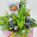Погрузитесь в волшебный мир весны с нашей уникальной композицией весенних луковичных первоцветов! В композиции вас ждут изящные гиацинты, создающие неповторимую атмосферу свежести и красоты, украшенные веточками натуральной хвои. Прекрасный подарок на 8 марта, Пасху ,юбилей, день рождения, Новый год, Рождество. Такой букет, с живыми цветами, смотрится очень нарядно и празднично. Подарить композицию можно маме, бабушке, учителю, руководителю, подруге, коллегам, да кому угодно. Букетик будет гармонично вписываться в любой интерьер. Мини садик с первоцветами это лучше чем срезанные цветы и лучше чем обычный букет. Этот нежный и стильный подарок принесёт радость и уют в любой дом или офис, подчёркивая важность и красоту весенних моментов. Подарите эту композицию и порадуйте вашего близкого человека нежными ароматами и яркими цветами в самый особенный праздник!