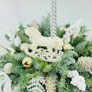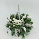 Такая композиция будет отлично смотреться в ресторане, кафе, галерее и любом другом помещении общественного пользования. Новогодняя композиция на стол из натуральной хвои, усыпанная елочными шарами, станет идеальным дополнением к новогоднему столу. Мы предлагаем вашему вниманию то, что отлично впишется в любой интерьер и не потребует от Вас внимания и ухода. Новогодняя композиция на стол, отлично подходит для небольших квартир и помещений. Если вам нужна идея для необычного и оригинального подарка близким и друзьям, то букет из нобилиса это то, что вам нужно для того, чтобы порадовать себя и близких.
