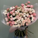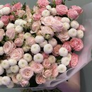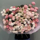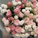- Уникальный букет из пионовидные кустовые роз и премиум хризантем
