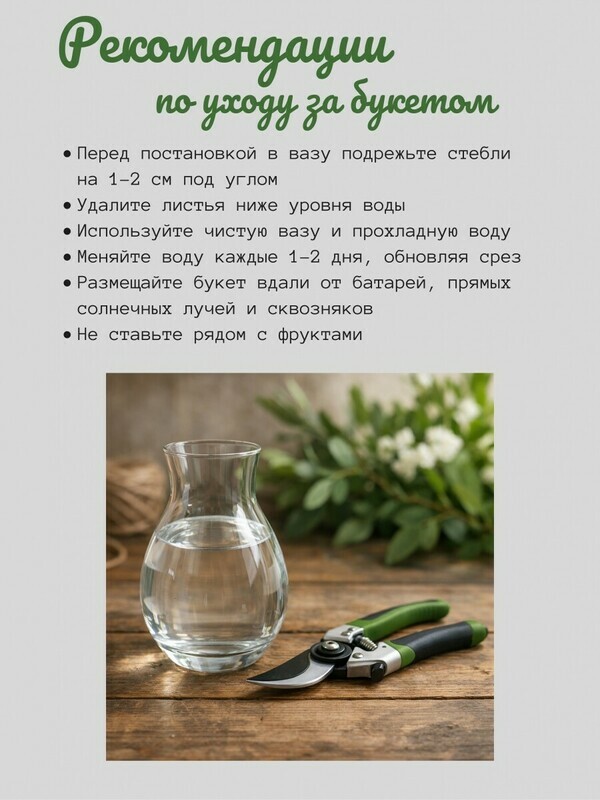 Если получателю не понравится букет, и Вы сообщите нам об этом в течение 24 часов, мы бесплатно его поменяем.