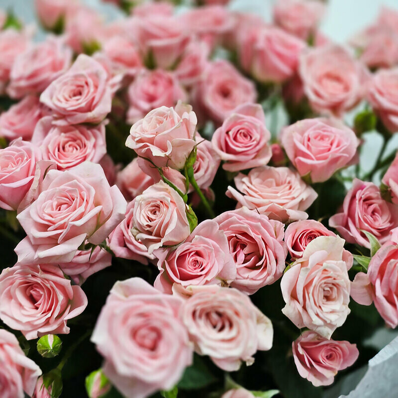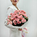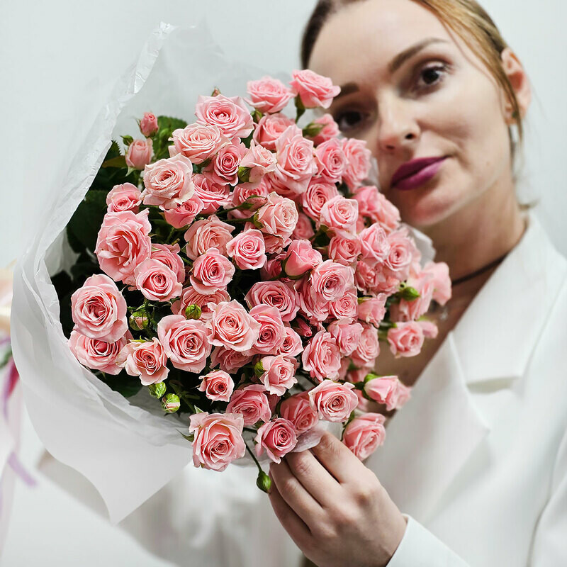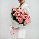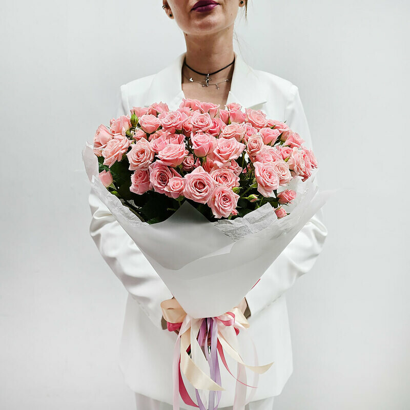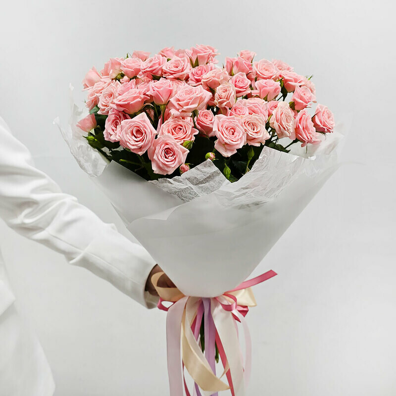 Розовая кустовая роза в букете 15 шт