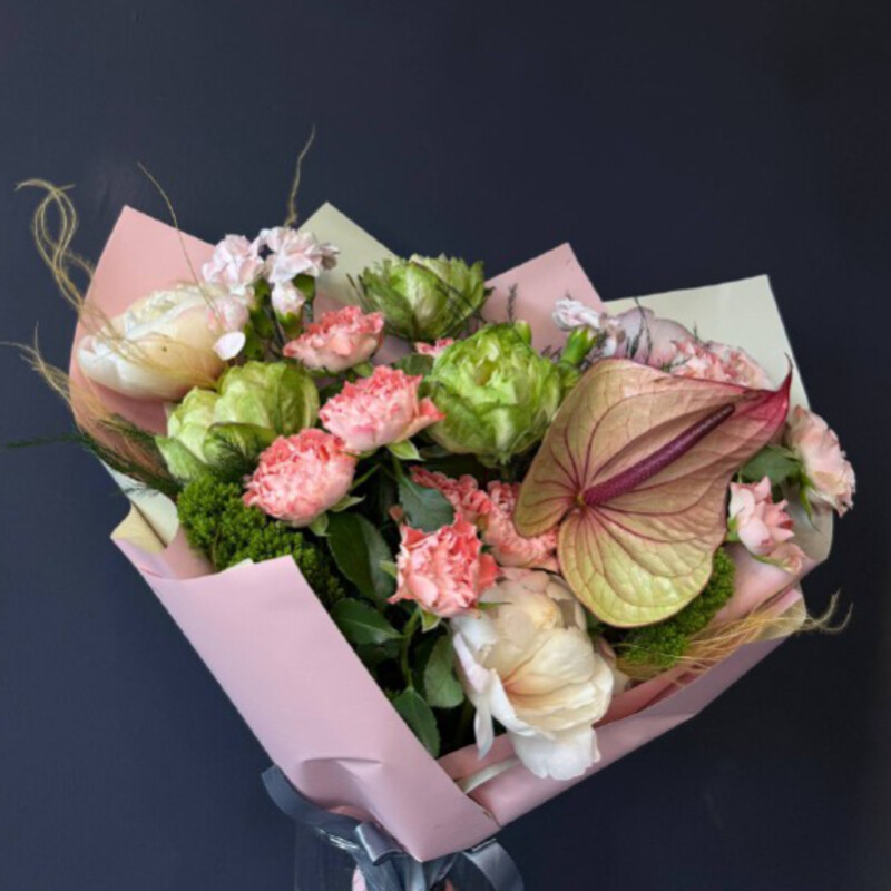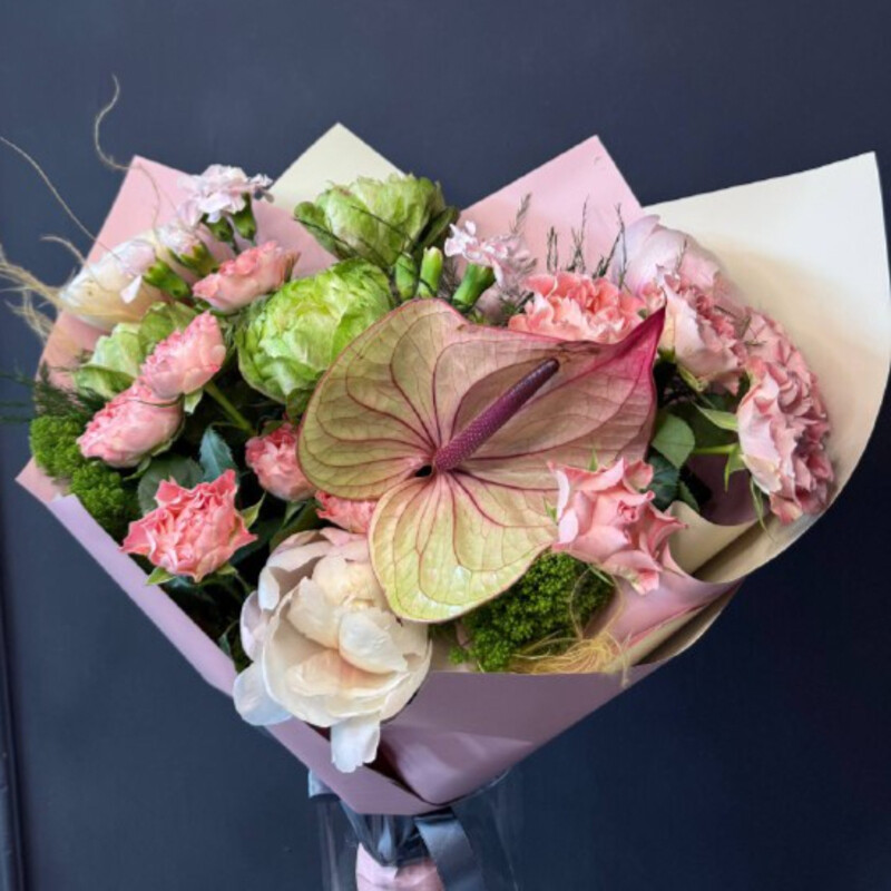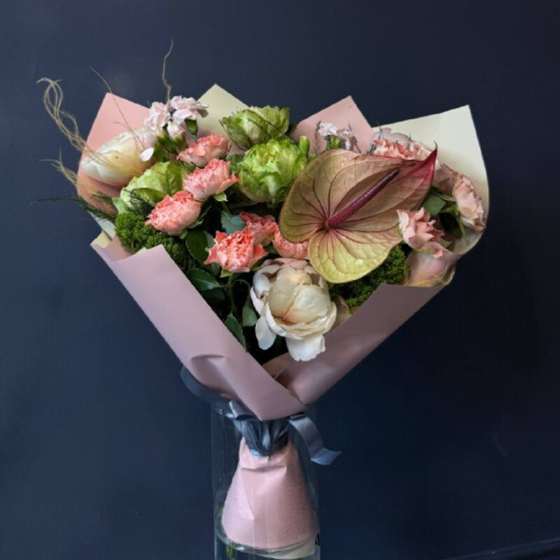 - Букет с антуриумом и розой Вегги