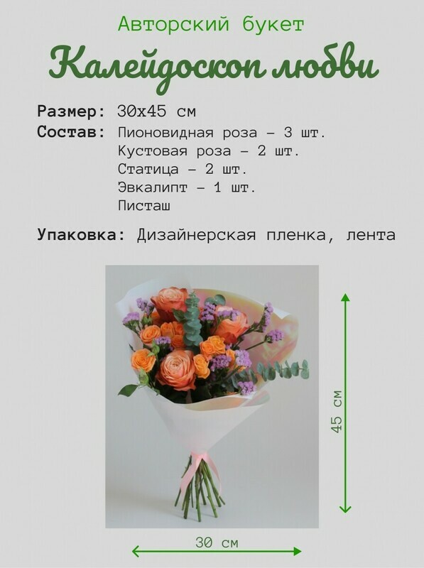 - Букет с пионовидными розами «Калейдоскоп любви»